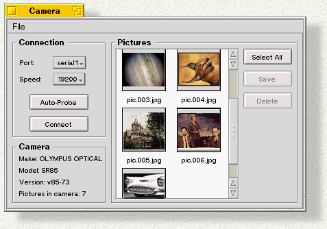 lets you download and view digital pictures--fast--on the BeOS. Look at About Camera