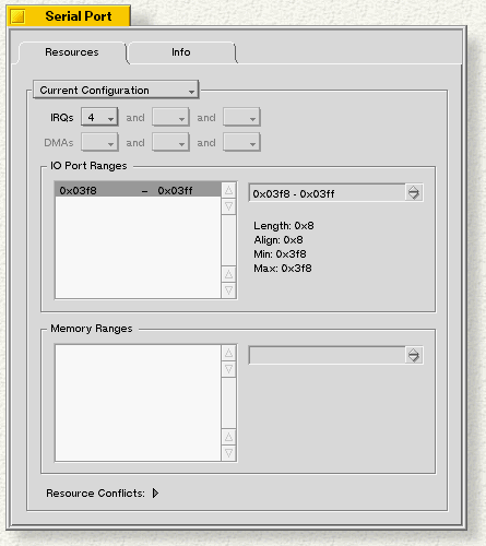 Resource conflicts should occur only between ISA and plug and play devices. There are two perspectives from which to view such conflicts when they occur--from the point of view of the device or from the point of view of the resource: