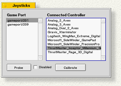 Joysticks configures the joysticks that you have plugged into your computer.